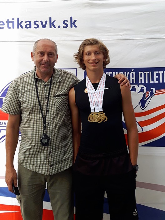 Foto: Tréner Štefan Bielik s Oliverom Murckom a troma zlatými medailami